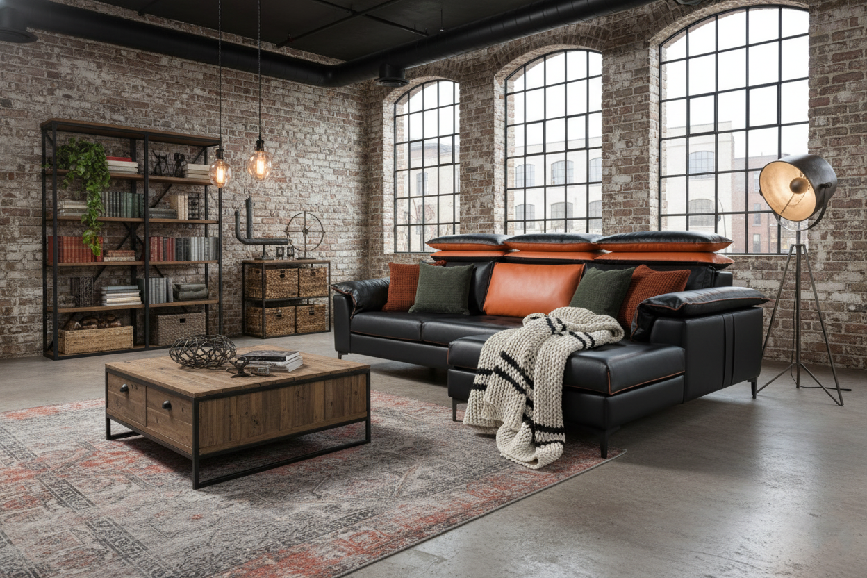 Лофт — стиль индустриальной эстетики. Диван должен быть: