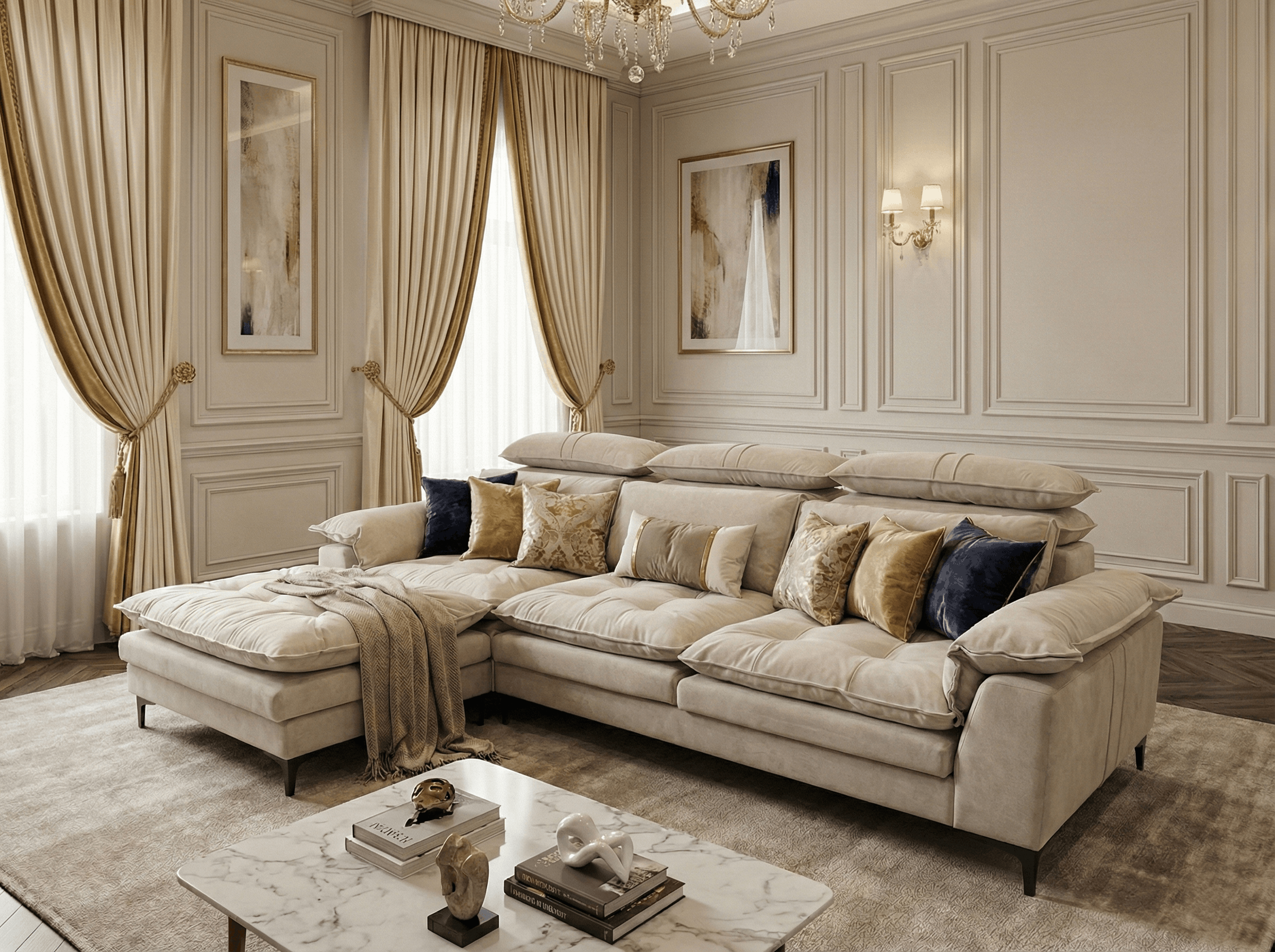Классический интерьер требует элегантности и симметрии. Диван должен быть: