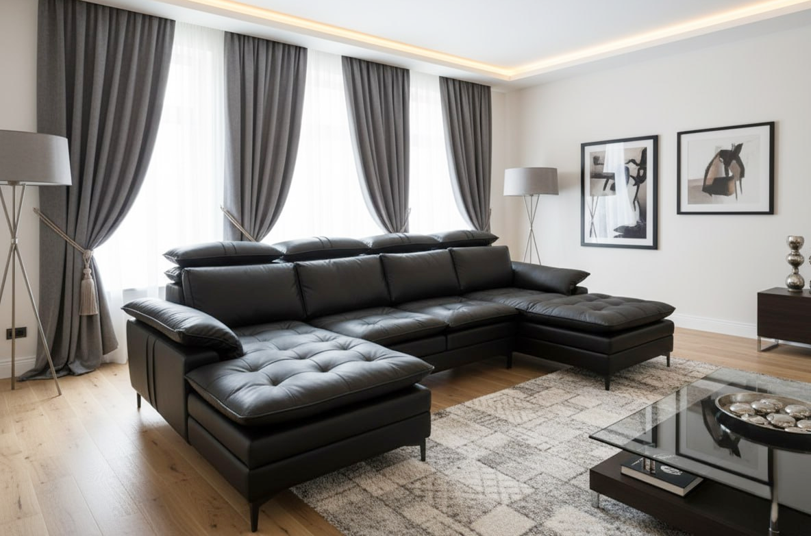 💡 В большой гостиной часто лучше работает не один диван, а несколько предметов мебели: основной модуль и пара кресел или пуфов. Так интерьер выглядит гармоничнее, а отдых становится разнообразнее.